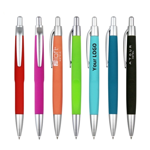 Promozioni personalizzate con Logo dell'hotel penne a sfera 1.0mm in plastica con larghezza di scrittura rivestita in gomma